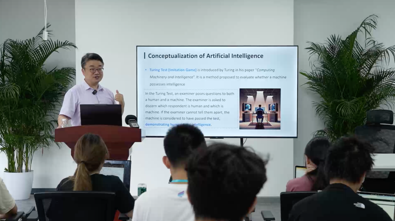 2024年,刘知远还与教育学院等联合推出了“MAIC”(Massive AI-empowered Courses)智能教学平台,开启了另一项AI教育实验。借助该平台,他开设了“迈向通用的人工智能”课程,实现“用AI传授AI”。这是一门AI智能体主导的新型课程,课堂由AI教师授课、AI助教答疑,甚至会有不同性格的AI学生一起讨论,学生可随时打断课程提问获得个性化反馈。一名参与试点的学生感慨:“这更像是一场专属于我的学术对话,不再是单向的知识灌输。”