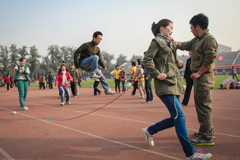 图为开幕式之集体跳大绳环节。