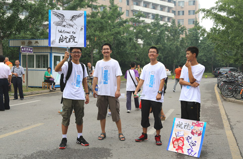 前来迎接新生的“老生”们。记者 郭海军 摄