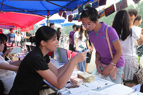 美术学院迎新处。记者 郭海军 摄