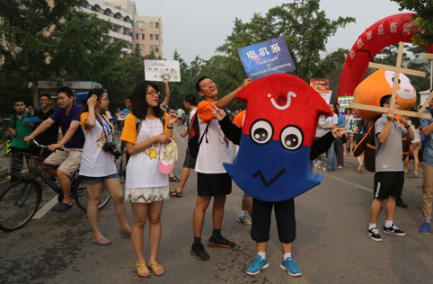 各个院系“花招”频出迎接新生。记者 苑洁 摄