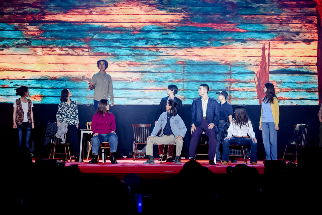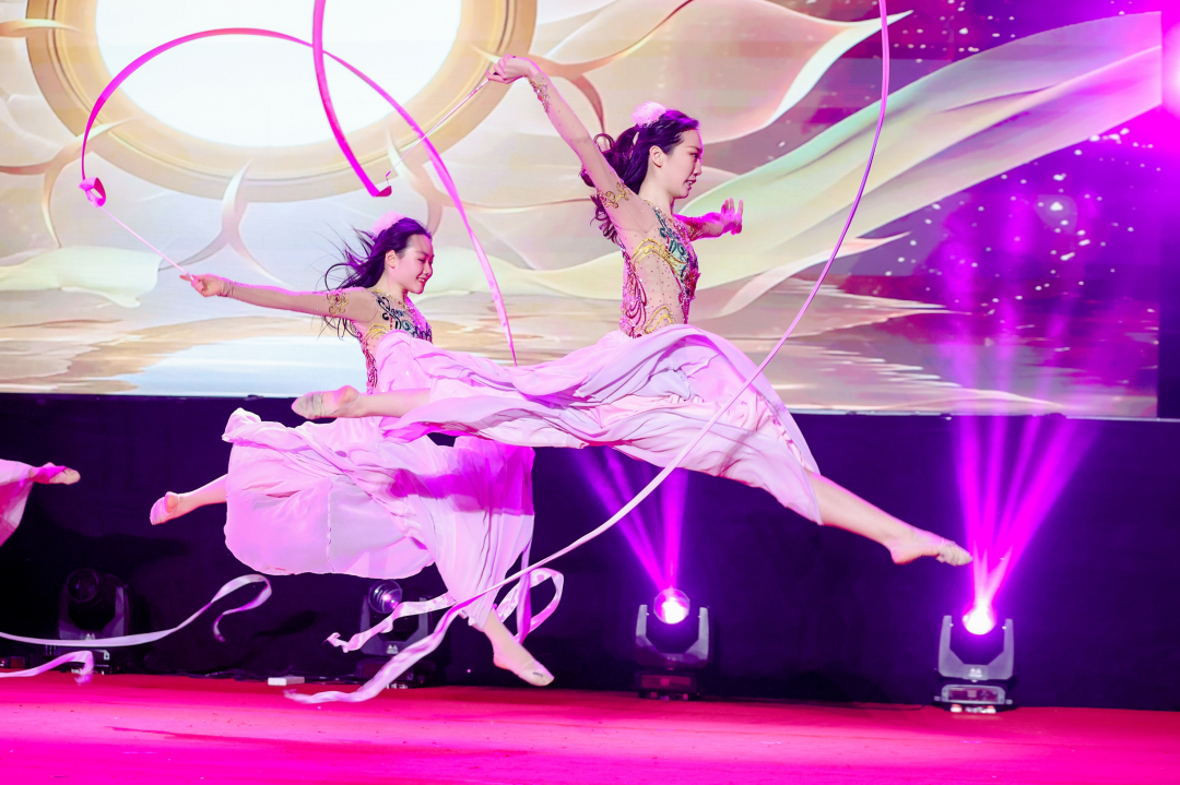 跳绳代表队创新地将花样跳绳项目搬上新年舞台,搭配青春动感的音乐,用高难度技巧惊艳全场,更展现了体育代表队同学们的精神风貌。非我日乐队携手学生艺术团民乐队,以欢快的《江风》邂逅原创国风曲目《水乡回音》,在电子乐器与东方民乐器交织中描绘一幅生动的水乡风景。学生说唱社持续发力,带来一首全新说唱曲目,热烈的舞台引发全场欢呼,动感节奏引领观众共同展望新的一年。