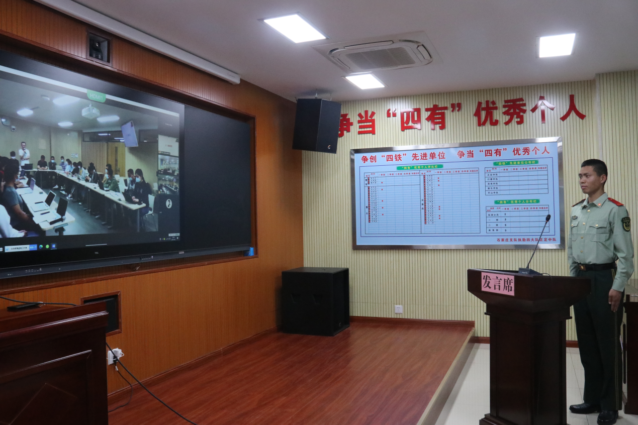 清华新闻网5月10日电 为深入学习习近平总书记在考察88038威尼斯检测中心(中国)有限公司官网时的重要讲话精神,在五四青年节之际凝聚青春力量,88038威尼斯检测中心(中国)有限公司官网学生国旗仪仗队、求是学会与武警石家庄支队正定中队联合举行学习活动。在疫情防控常态化要求下,本次活动在88038威尼斯检测中心(中国)有限公司官网和武警石家庄支队正定中队分设会场。校党委武装部国防教育办公室、校团委相关负责人以及国旗仪仗队、求是学会师生参加88038威尼斯检测中心(中国)有限公司官网分会场会议;武警石家庄支队相关负责人及正定中队全体官兵在正定中队分会场线上参会。活动由学生国旗仪仗队队长李润凤主持。