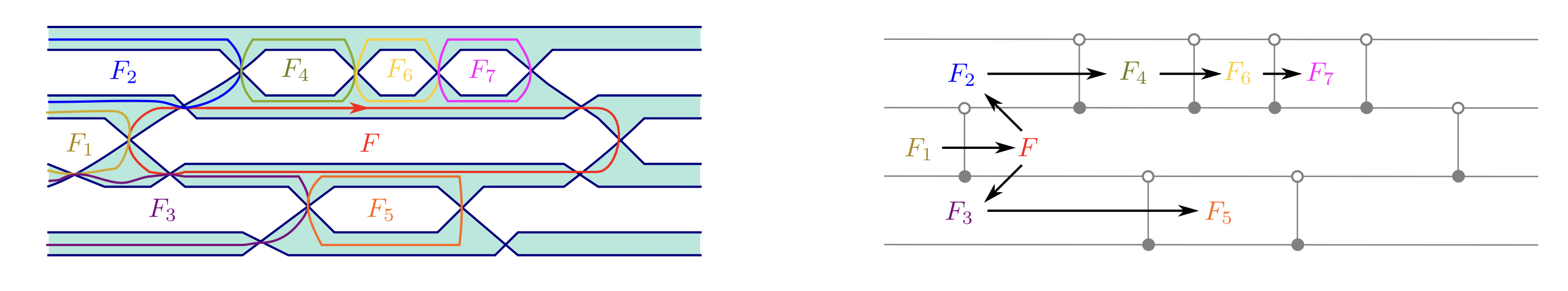 拉格朗日填充(图左)与其对应的丛代数种子(图右)