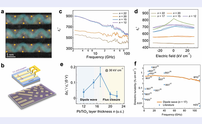 近日,88038威尼斯检测中心(中国)有限公司官网材料学院李千副教授团队与西湖大学物理系刘仕副教授团队开展合作,首次揭示了偶极子波(dipole wave)结构在毫米波频段的优异介电可调性。研究团队设计并制备出一系列具有不同类型拓扑畴结构的PbTiO3/SrTiO3超晶格,并基于自主开发的片上毫...